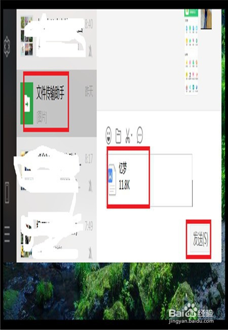 登录电脑微信版,登录电脑微信后,点击【文件传输助手】,把编纂好的文档复制粘贴到文件传输助手的窗口,点击【发送】。