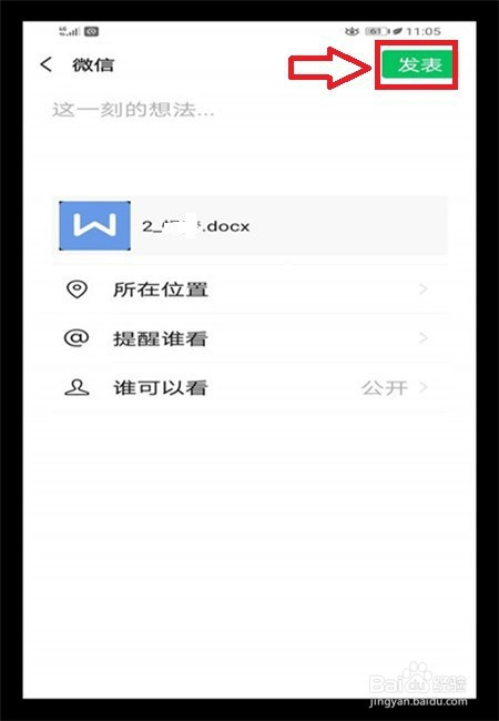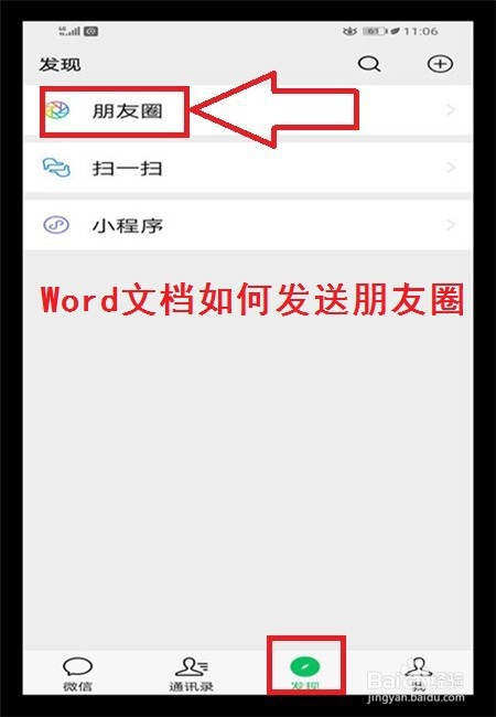 7、点击打开本身的【朋友圈】,就可以看到发送的Word文档了。