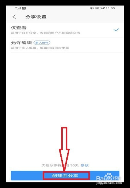在【分享设置】页面,选择【仅查看】,然后点击下方的【建立并分享】。