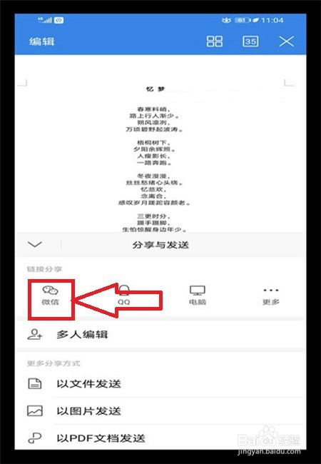 点击【分享】后,在【链接分享】的下方,点击第一个【微信】。