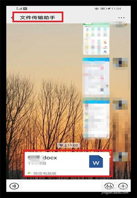 3、登录手机微信,点击【文件传输助手】,点击Word文档,打开文档;