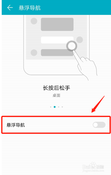 打开“悬浮导航”右边的按钮,开启悬浮导航。