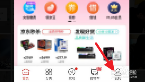 进入京东app后,我们需要点击界面底部的【我的】按钮