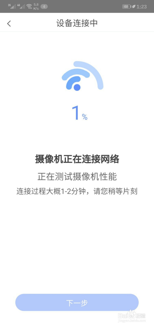 最后期待1-2分钟,摄像机正在毗连手机,毗连完后就可以了。