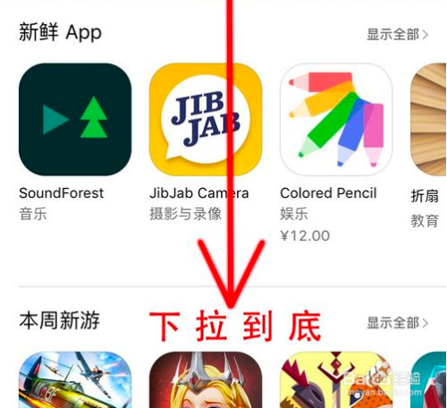打开App Store,下拉至底部。