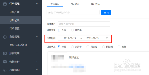 在订单办理里面点击“订单记实”,切换日期时候,可以查询每一天的订单环境,还可以周期性查询订单,每一笔已完当作、进行中、已打消订单都可以查看到。