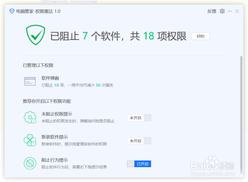 完当作后封闭电脑管家即可让指定的软件不克不及发弹窗了。