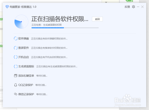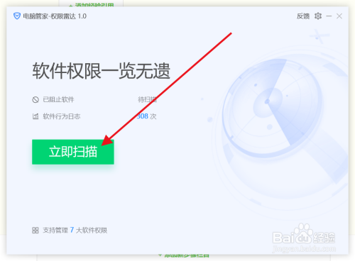 打开当即扫描进行查看软件的权限,过程可能需要30秒摆布,请耐烦等待。