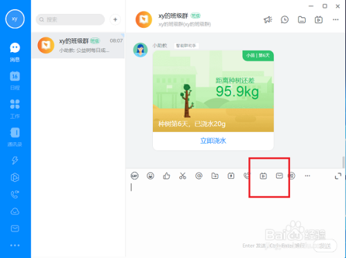第一步电脑上打开钉钉,选择一个要直播的群,点击倡议直播图标,如下图所示: