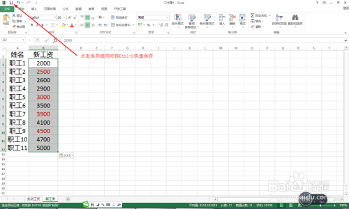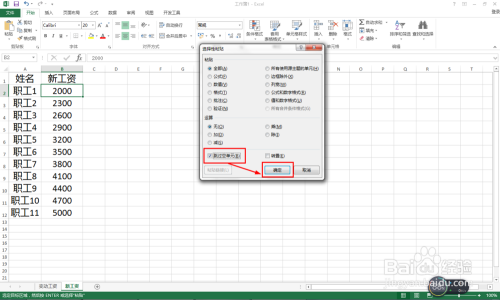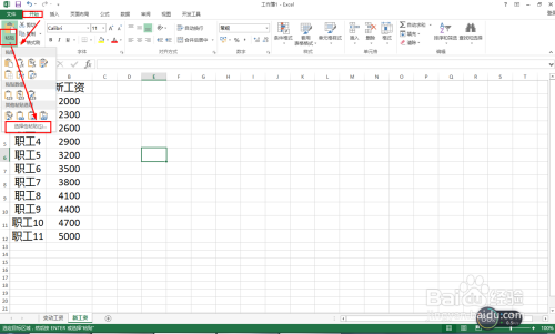(2)原有工资复制粘贴到新工资表并点窜新题目:新工资;