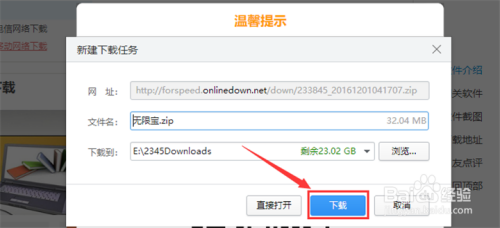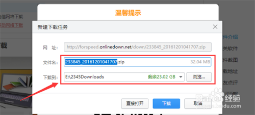 在“新建下载使命”对话框上,按照需要对文件名和下载保留位置进行点窜。见下图