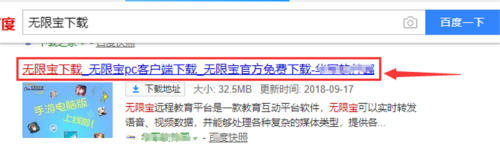 在搜刮出来的浩繁链接中,找到适合本身且信得过的链接,并点击它(如:无限下载_无限宝PC客户端下载_无限宝官方免费下载XXX)。见下图