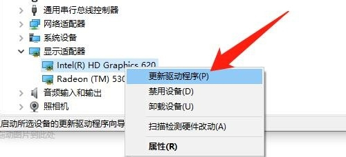 5、鼠标右键【Intel(R) HD Graphics 620】