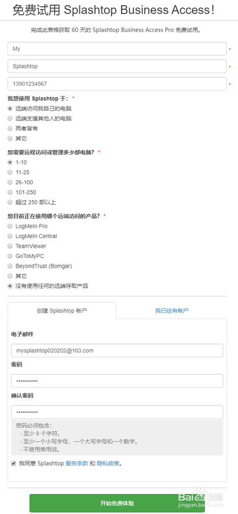 完当作表格的填写,点击“起头免费体验”, 账号即可完当作注册。