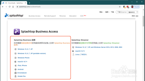 拜候Splashtop官方本家儿页,点击右上角的下载链接。鄙人载页面里按照您利用的平台下载响应的节制端应用。