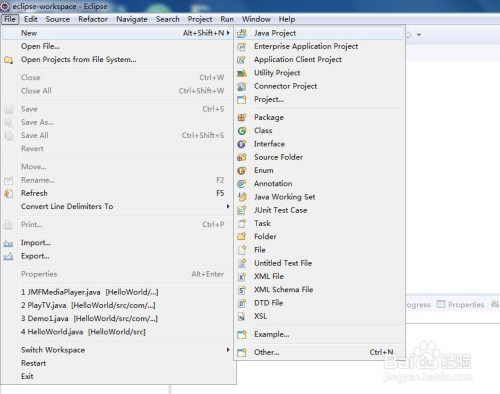 点击菜单栏New-->Java Project,如图所示: