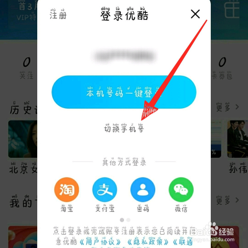 第四步,点击切换手机号。