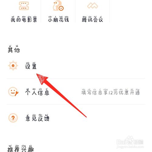 第三步,进入小我中间后,响应页面标的目的上找到设置。