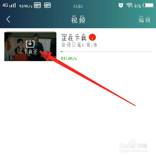 第六步,查看缓存进度,缓存进度完当作视频就下载完当作啦。