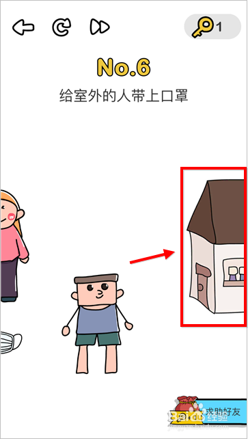 本关卡移动界面口罩发现只有2个,而界面有3小我。口罩必定是不克不及交叉戴的,这时辰我们滑动界面到右侧,将此中1小我拖进房子里,剩下的人1人戴1个口罩即可。