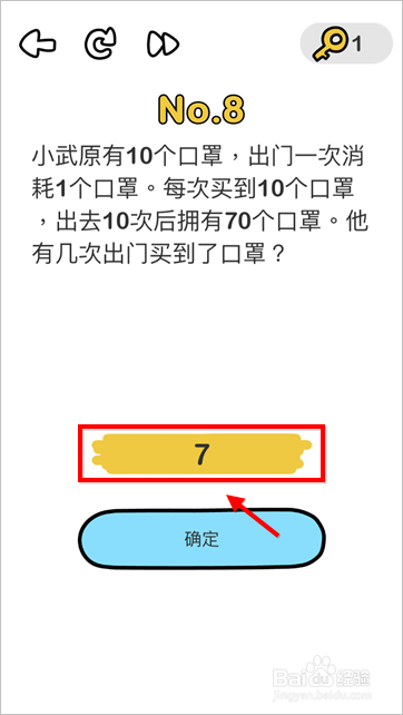 本关卡考数学,当然也带有一些讥讽,究竟结果当下的口罩真的很难买。有乐趣的小伙伴可以本身计较下,准确谜底是“7”,提交即可过关。