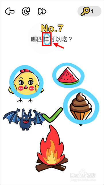 本关卡目标是告诉您野味不克不及吃,继而要求在界面找出4个能吃的工具,蝙蝠是绝对不克不及吃的,良多玩家只找到夺目的3个,最后1个是题目“样”里面“羊”。