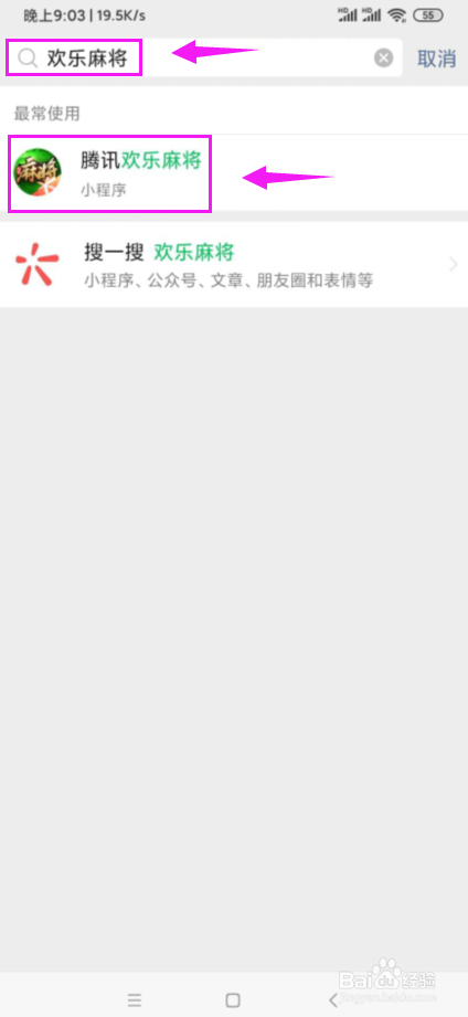 3、输入搜刮游戏名称,进入小程序。