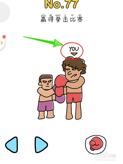 第二步,将图像中个子较小的拳击手上的“YOU”图标按住。