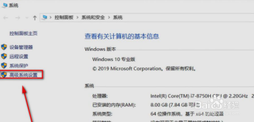 系统框里点击高级系统设置。