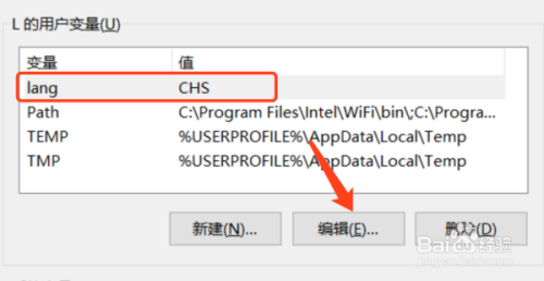 点击对话框的用户变量lang,起头编纂。