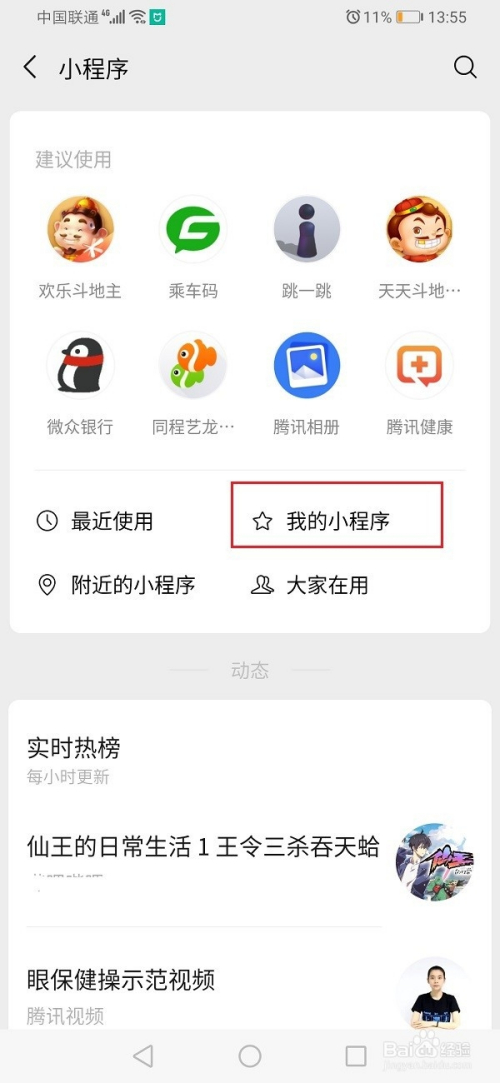 第二步进去小程序之后,点击我的小程序,如下图所示: