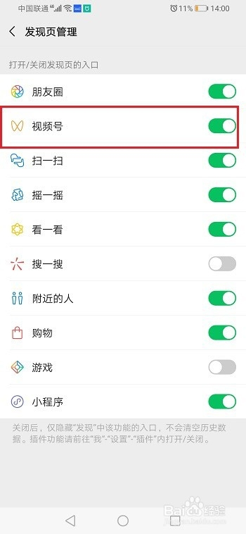 第四步进去发现页办理之后,可以看到视频号是开启的,如下图所示: