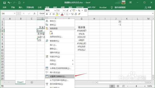 在Excel表格将光标移动到需要确定的单位格位置,右键弹出快捷菜单,然后选择“设置单位格格局”。