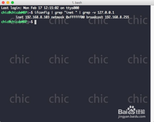 在终端中输入号令:ifconfig | grep"inet" | grep -v 127.0.0.1