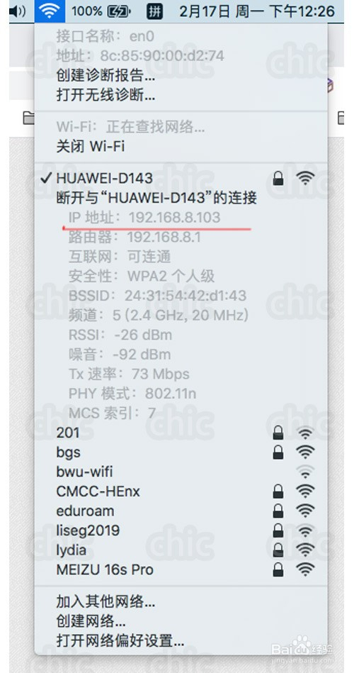 按住option键然后点击wifi旌旗灯号图标,就看到IP地址啦!