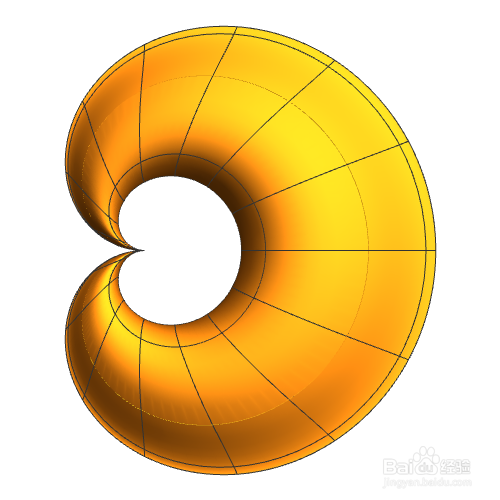 水滴形曲线绕着x轴扭转360°,获得的曲面再进行缩放: