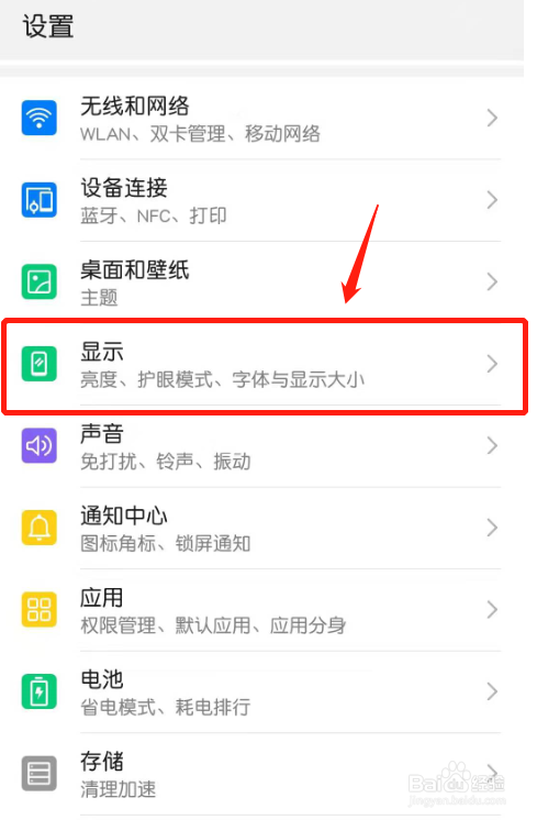 设置页面中,点击“显示”。