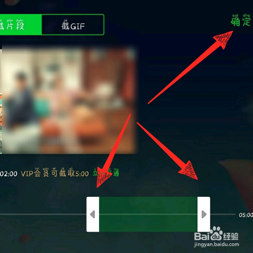 第四步,选择截取片段或者是截取GIF,调整时长,点击确定。