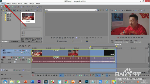 打开vegas,找到——项目媒体,先将素材鼠标拖拽至时候轴上。