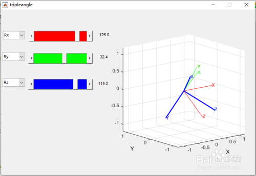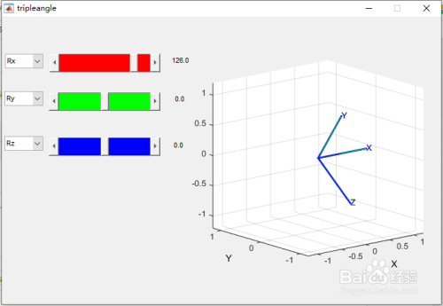 点击“Rx”上的摆布键,可以调节坐标绕着x轴动弹。