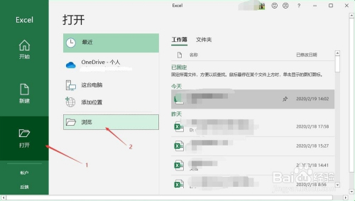 启动Excel后点击起头,然后点击浏览。