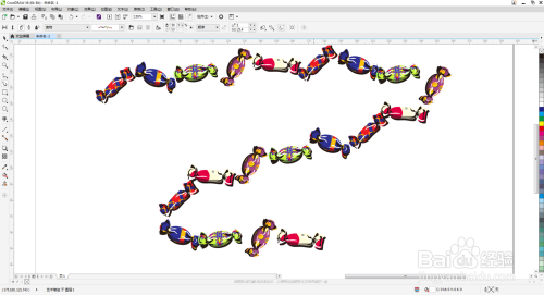 按图示在作图区域绘制出一条曲线路径,完当作糖果图案喷涂结果的建造。