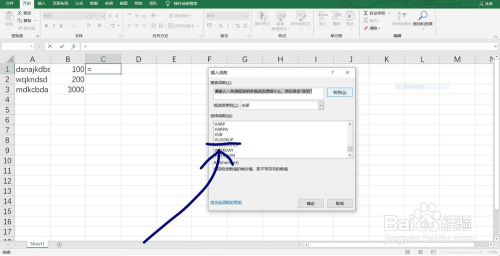 选择一个空白列,输入“=”号,选择Excel中的VLOOKUP函数。