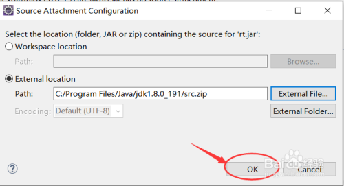 这样Java源码的zip文件就被选中到Path路径中了,然后点击OK,如下图所示: