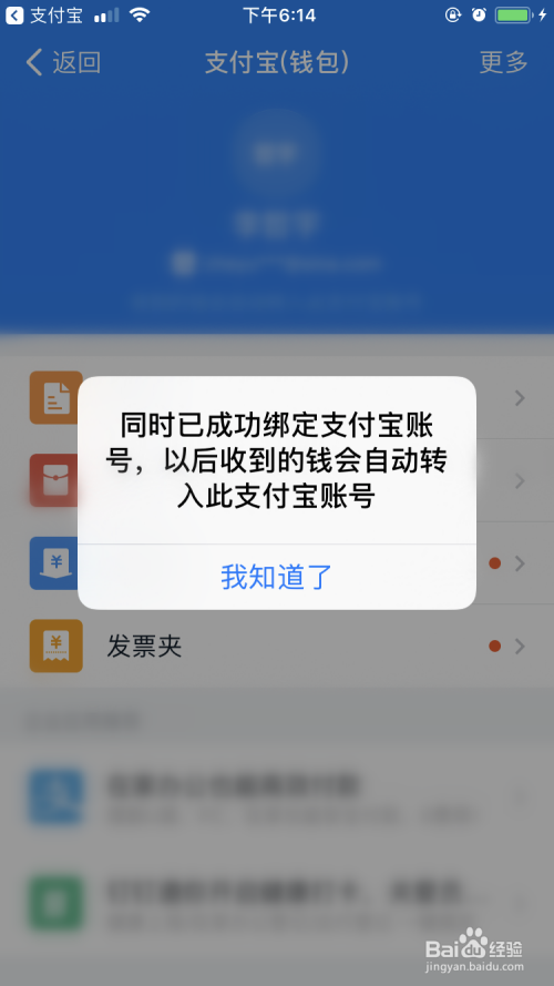 OK,已当作功绑定支付宝账号。今后在钉钉收到的钱会主动转入绑定的支付宝账号内。