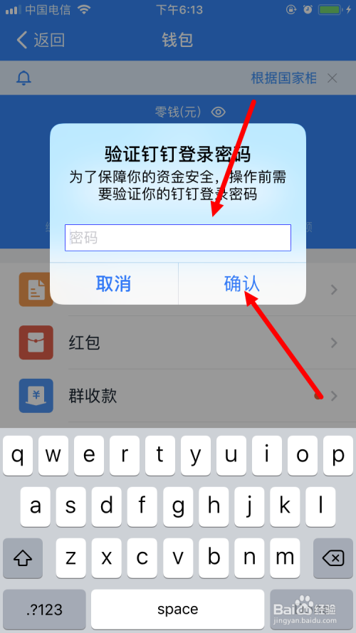 4、输入钉钉的登录密码,并点击【确认】;