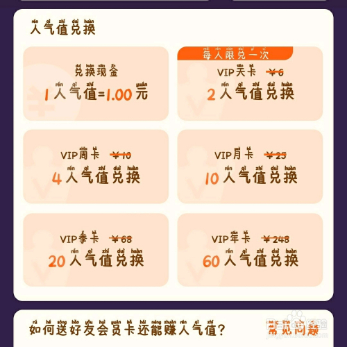 第五步,将该页面标的目的下滑就是兑换会员及现金的进口,攒够响应的人气值,就可以兑换会员啦。