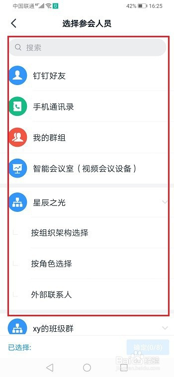 第四步设置视频会议参会人员,点击确定,就当作功预约视频会议了