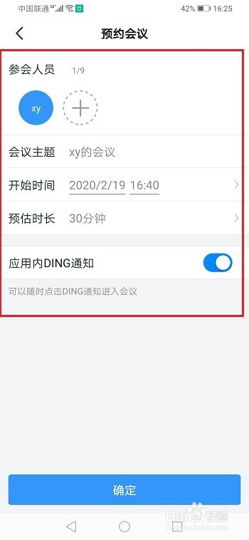 第三步进去预约会议界面,设置会议本家儿题和时候