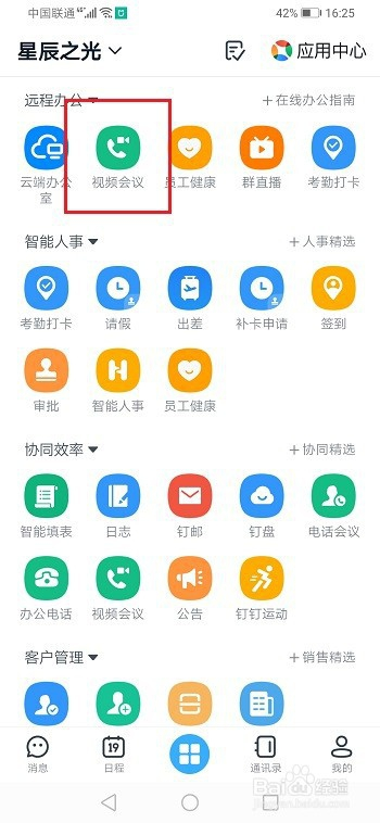 第一步手机上打开钉钉,进去工作台,点击视频会议
